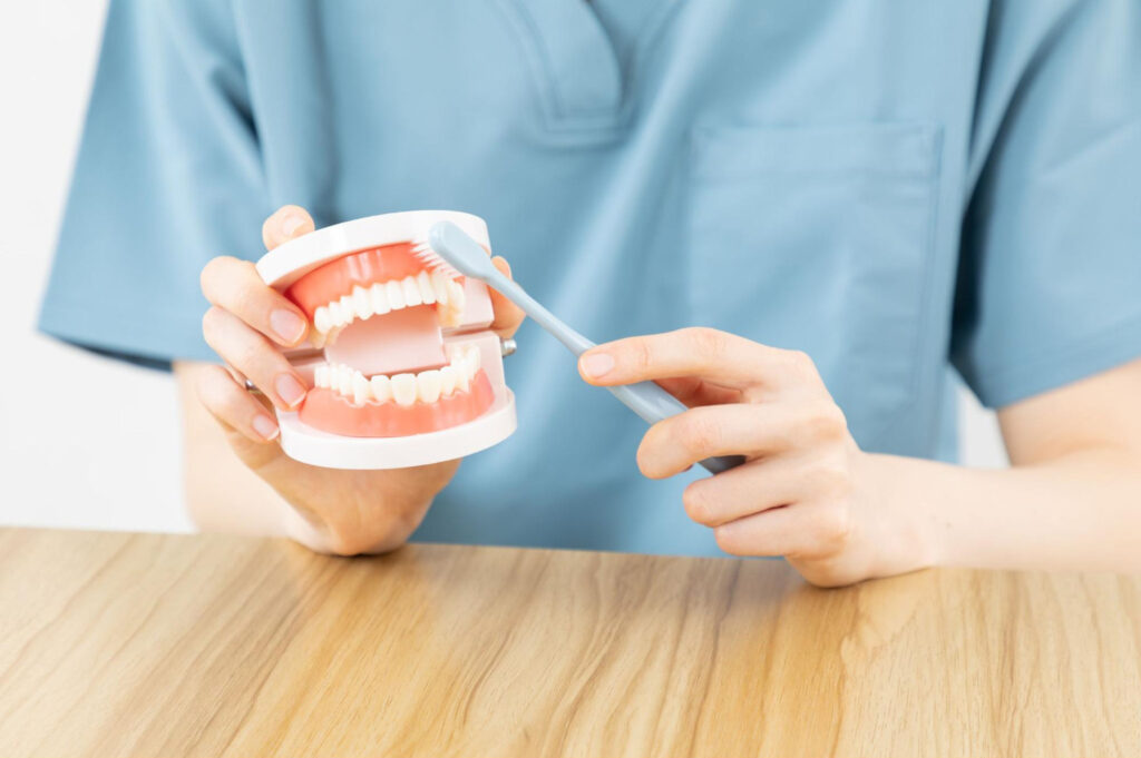 歯科医院でのプロフェッショナルケアは、セルフケアだけでは不十分な部分をサポートし、セルフケアの質を高めるためのブラッシング指導も行います。